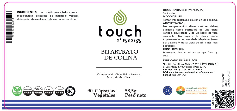 Bitartrato de colina 90 cáps.  Elimina las grasas del hígado