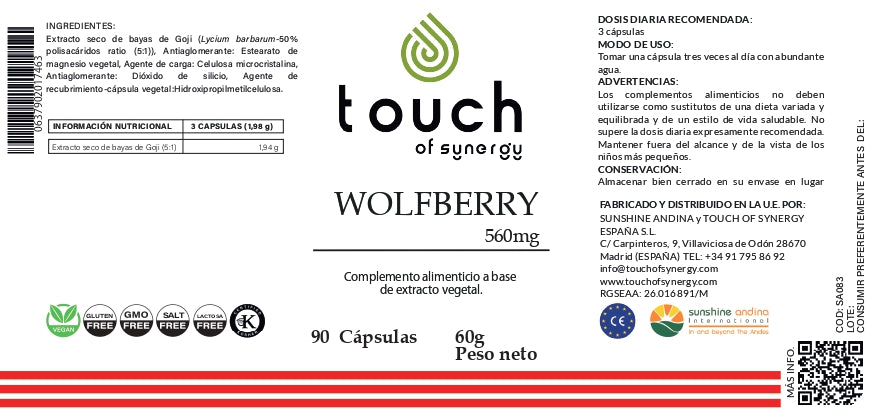 WolfBerry 500mg (GOJI). Las bayas de la felicidad y la eterna juventud. Alivia el cansancio y mejora la memoria.